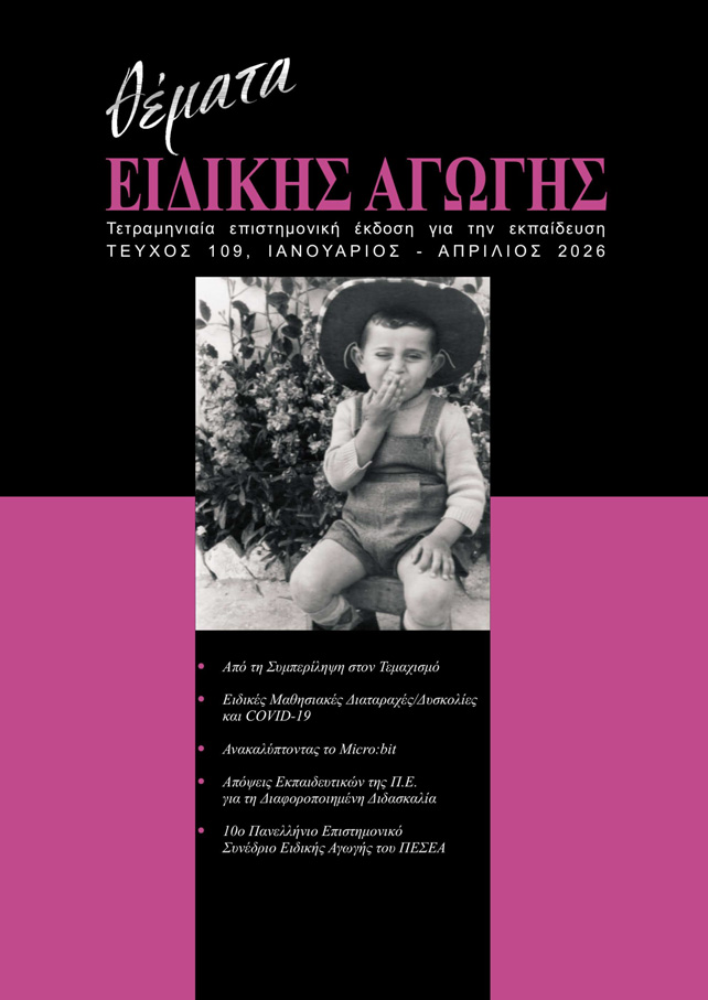 Ο Πανελλήνιος Επιστημονικός Σύλλογος Ειδικής Αγωγής, αντιλαμβανόμενος την επιστημονική πολυπλοκότητα των ζητημάτων που ανακύπτουν, τα παιδαγωγικά διακυβεύματα, τις αλληλεξαρτήσεις των σύγχρονων κοινωνικών και εκπαιδευτικών απαιτήσεων με τους οικονομικούς περιορισμούς και τις πολιτικές παροχών ή περικοπών, διατηρεί ανοιχτή κάθε συμμετοχική επεξεργασία θέσεων και διεκδικήσεων. Θα συνεχίσει να συνδράμει τις Ομοσπονδίες του Εκπαιδευτικού και Ειδικού Εκπαιδευτικού Προσωπικού -Δ.Ο.Ε., Ο.Λ.Μ.Ε., Π.Ο.Σ.Ε.Ε.Π.Ε.Α.-, και μέσα από το περιοδικό Θέματα Ειδικής Αγωγής θα δίνει το βήμα στους μαχόμενους επιστήμονες, μεριμνώντας για την κατάθεση πονημάτων, μελετών και ερευνών αλλά και συντηρώντας τη διάχυση τεκμηριωμένων απόψεων και θέσεων που, συχνά, όχι μόνο αποτελούν εναλλακτικές προτάσεις ερμηνειών, προσεγγίσεων ή διαχείρισης, αλλά και αμφισβήτησης ή αποδόμησης κυρίαρχων αντιλήψεων, στερεοτύπων και εκπαιδευτικών πολιτικών. Ύστερα δε από τη Σύμβαση που υπέγραψε ο Πανελλήνιος Επιστημονικός Σύλλογος Ειδικής Αγωγής με το Εθνικό Κέντρο Τεκμηρίωσης, το Περιοδικό και τα άρθρα θα φέρουν Ψηφιακό Αναγνωριστικό Αντικειμένου (DOI – Digital Object Identifier). Πολλαπλασιάζοντας τη δυναμική του διαλόγου, το γεγονός αυτό αναβαθμίζει την επιστημονική – εκδοτική ταυτότητα του Περιοδικού, διασφαλίζει τη μόνιμη και αξιόπιστη αναγνώριση κάθε άρθρου, διευκολύνει την αναζήτηση και την παραπομπή του στη διεθνή βιβλιογραφία και ενισχύει τη διαχρονική προσβασιμότητα και απήχησή του. Η Συντακτική Επιτροπή του Περιοδικού εργάζεται, ώστε να επιτευχθεί τεχνικά στο προσεχές χρονικό διάστημα η δημοσίευση όλων των Εργασιών (παλαιότερων, νεότερων και μελλοντικών) στην ειδική πλατφόρμα του Εθνικού Κέντρου Τεκμηρίωσης (Ε.Κ.Τ.).